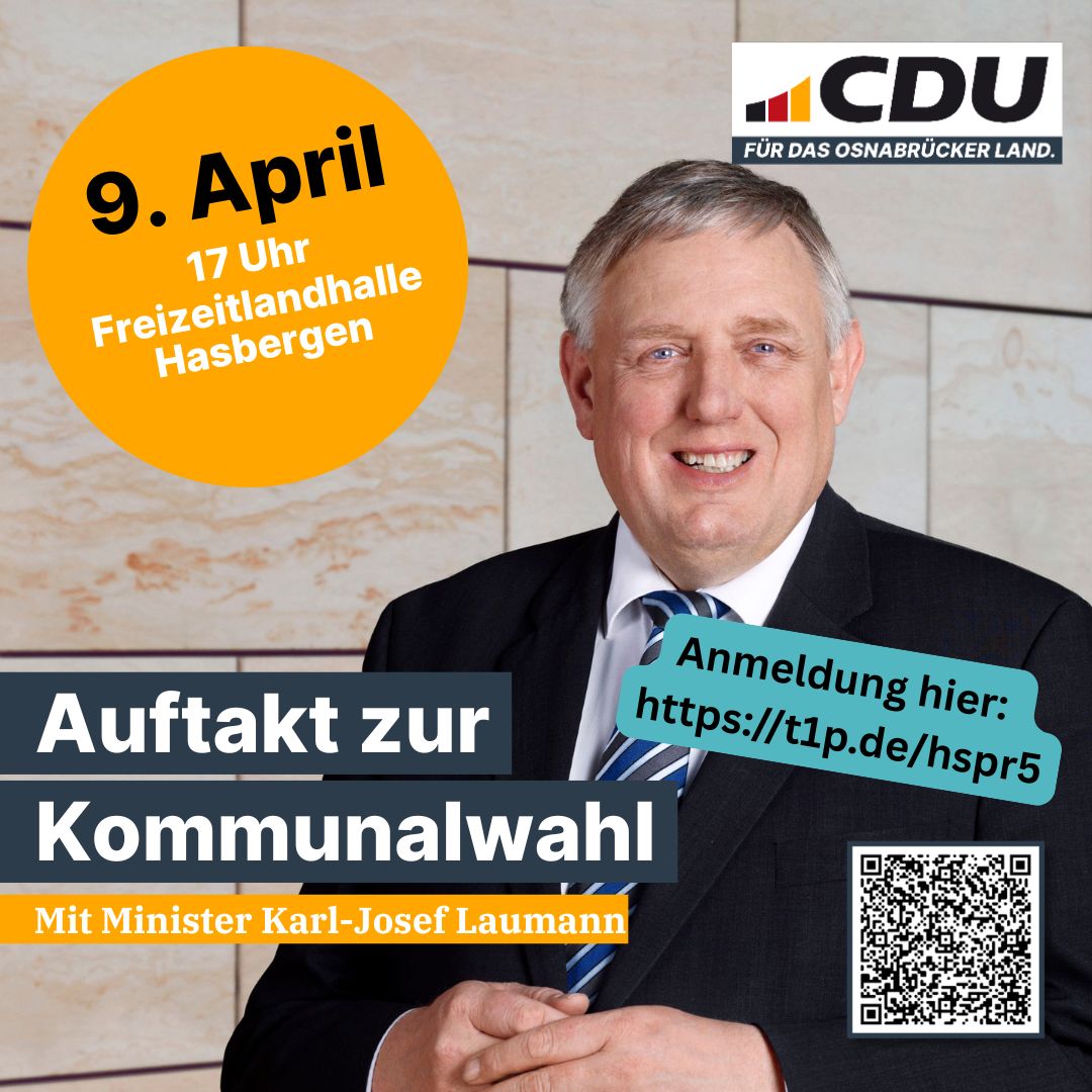 Jetzt schon anmelden: https://forms.office.com/e/gGP1xVfr7XAlle Interessierten sind herzlich willkommen!Als CDU übernehmen wir vor Ort Verantwortung und möchten unsere Heimatkommunen und den Landkreis weiter gestalten ? mit Vertrauen in die Menschen und im Schulterschluss mit allen, die das Leben in unserer Region jeden Tag am Laufen halten.Vereine und Verbände, Schulen, Kindergärten, Baugebiete, Nahversorgung: Als Kommunalpartei sind wir genau dort tief verwurzelt, wo Politik sichtbar wird. Hier gemeinsam zu gestalten, braucht Fleiß, Herz, Standhaftigkeit ? und eine gute Vernetzung mit den vielen engagierten Kommunalpolitikerinnen und -politikern in den Nachbarstädten, -gemeinden und -samtgemeinden.Besonders freuen wir uns über den Besuch von Karl-Josef Laumann, Minister für Arbeit, Gesundheit und Soziales des Landes Nordrhein-Westfalen. Mit einem Impuls aus seiner langjährigen politischen Erfahrung wird er mit uns den Weg zur Kommunalwahl einläuten.Wir freuen uns auf gute Vernetzung, konstruktive Gespräche und einen erfolgreichen Start in den Kommunalwahlkampf 2026!#mitvereintenkräften #kommunalwahl #cdu #unterhaken #laumann